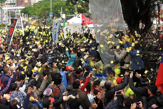 中國臺灣網(wǎng)1月10日訊 據(jù)臺灣媒體報(bào)道,臺灣“勞基法”修正案于今(10)日上午于“立法院”三讀通過,在“立院”場外發(fā)起抗?fàn)幍膭趫F(tuán)于上午9時開始整隊(duì)游行,沿途不斷撒冥紙、擊鼓表達(dá)不滿,繞行至“立法院”大門時,更有部分抗議民眾拋出煙霧彈表達(dá)不滿,最后勞團(tuán)回到青島東路宣布解散,但呼吁群眾回到工作崗位就地戰(zhàn)斗,“讓民進(jìn)黨付出代價(jià)!”
