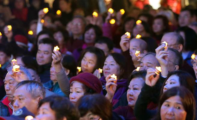 民眾點(diǎn)亮手中蠟燭緬懷蔣經(jīng)國(guó)。(圖片來(lái)源:臺(tái)灣《中時(shí)電子報(bào)》)