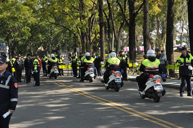 蔡英文赴南投幫黨內(nèi)候選人造勢(shì)拉票,警方出動(dòng)大量警力戒備。(圖片來(lái)源:臺(tái)灣《中時(shí)電子報(bào)》)