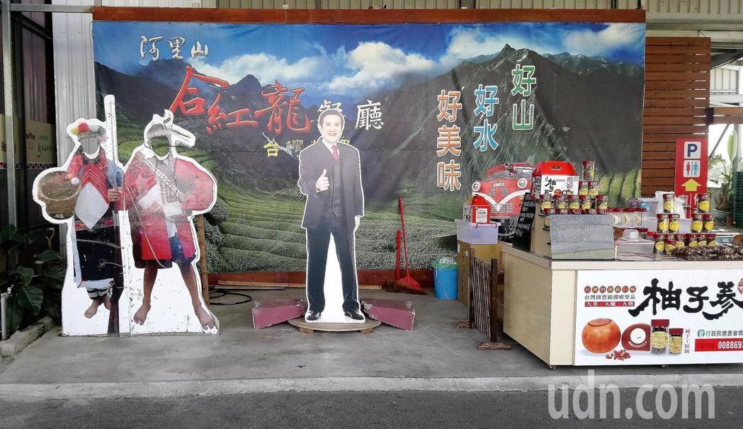 阿里山公路旁販賣茶葉、特產(chǎn)的商店,會(huì)設(shè)立馬英九立牌供游客拍照留念,因陸客驟減,許多店面經(jīng)常只剩馬英九立牌空立門前。(圖片來源:臺(tái)灣《聯(lián)合報(bào)》)