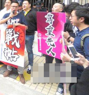 翁紹輝表示,國民黨青年部今天就是要表達(dá)另一種聲音,并要對“自由臺灣黨”下戰(zhàn)帖,希望他們出面,大家來理性辯論,不要像孬種一樣躲在樓上,而且他們不認(rèn)同“中華X國”,卻要“中華x國”的警察保護(hù),實在非常諷刺。