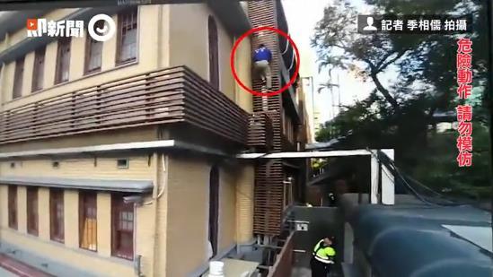 抗議當(dāng)日,繆德生攀爬建筑物跌落受傷。(臺媒報(bào)道截圖)