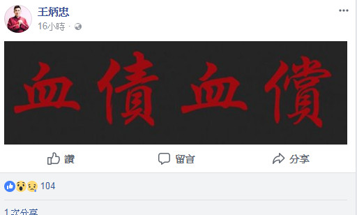 王炳忠發(fā)文“血債血償”。(圖片取自臺媒)