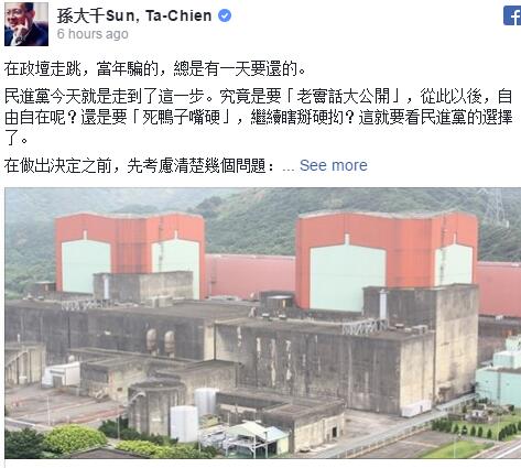 孫大千在今(7日)發(fā)文,為民進(jìn)黨的限電危機(jī)提出合理的解套方案。他說,在政壇走跳,總有一天要還的,在做出決定之前,有三點(diǎn)必須考慮清楚: