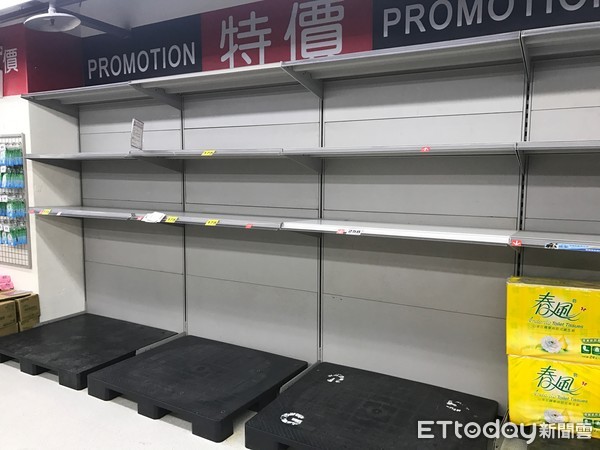 臺(tái)灣地區(qū)賣(mài)場(chǎng)衛(wèi)生紙被搶購(gòu)一空 。(圖片來(lái)源:臺(tái)灣“東森新聞云”)