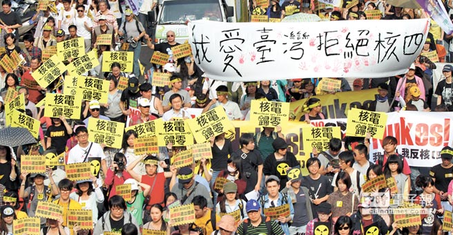 圖為2013年“廢核大游行”。(圖片來源:臺(tái)灣《中時(shí)電子報(bào)》)。
