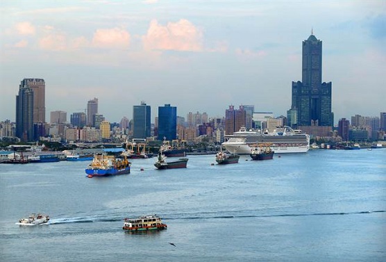 從旗津燈塔遠(yuǎn)眺高雄一港口港灣和包括高雄地標(biāo)85大樓等城市景觀。(圖片來源:臺(tái)灣“中時(shí)電子報(bào) ”)