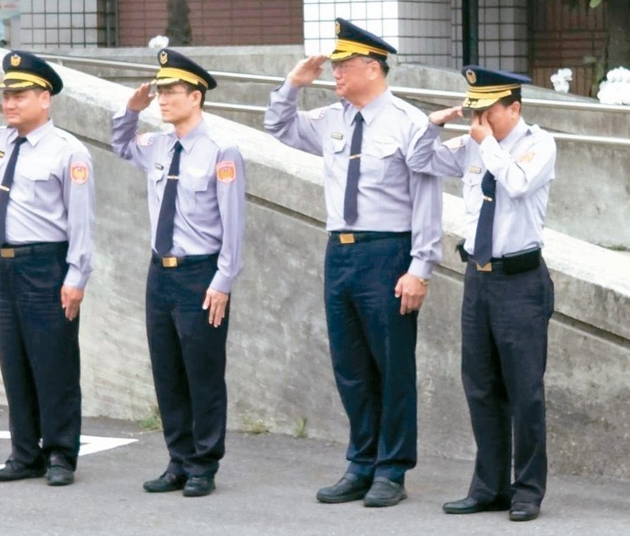 殉職警員郭振雄、葉家豪移靈時,同仁列隊忍不住拭淚。(圖片來源:臺灣《聯(lián)合報》)