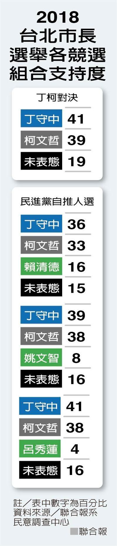 2018臺(tái)北市長(zhǎng)選舉支持度。(圖片來(lái)源:臺(tái)灣《聯(lián)合報(bào)》)