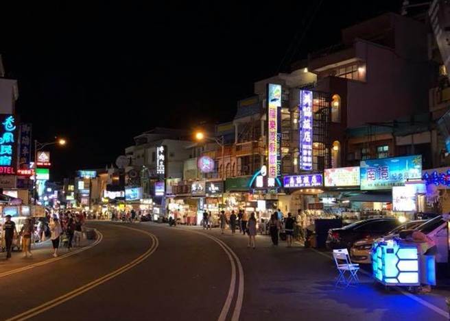 網(wǎng)友認(rèn)為近日墾丁大街爆人潮是“幻覺(jué)”,貼出平常晚間街道照對(duì)比,顯得冷清許多。(圖片來(lái)源:“爆廢公社”)