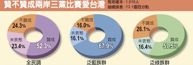 贊不贊成兩岸三黨比賽愛臺(tái)灣民調(diào)。(圖片來源:臺(tái)灣《中時(shí)電子報(bào)》)