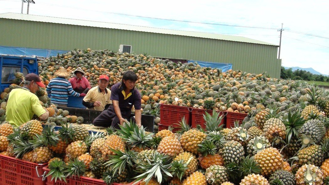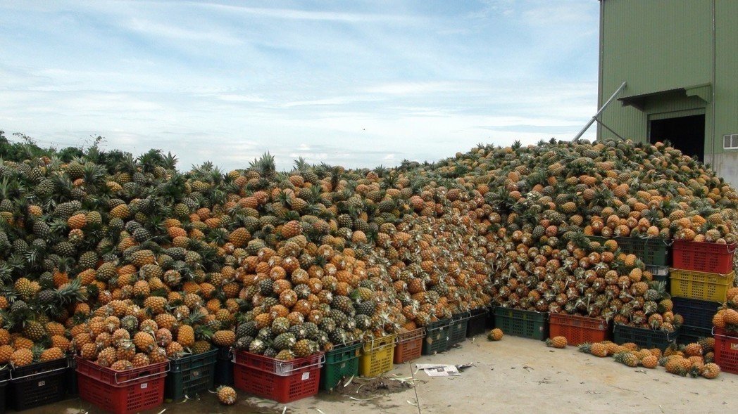 堆成山的鳳梨賣不出等著爛。(圖片來源:臺灣《聯(lián)合報》)
