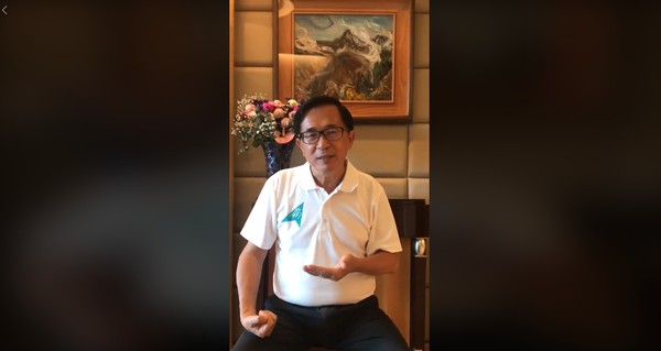 陳水扁發(fā)出影片,對(duì)民進(jìn)黨提出建言。(圖片來(lái)源:臺(tái)灣《中時(shí)電子報(bào)》)