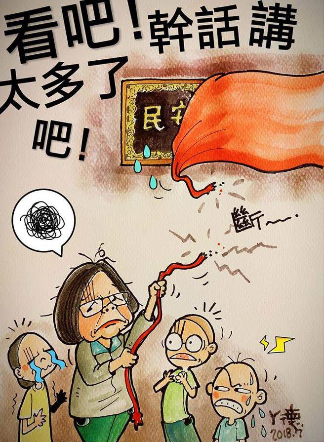 中國臺(tái)灣網(wǎng)7月16日訊 據(jù)臺(tái)灣《中時(shí)電子報(bào)》報(bào)道,臺(tái)灣地區(qū)領(lǐng)導(dǎo)人蔡英文13日到臺(tái)南市佳里金唐殿贈(zèng)匾“郅善安民”,在揭匾時(shí)她所拉的紅繩居然斷掉,現(xiàn)場(chǎng)氣氛尷尬。資深氣象主播李富城在臉譜網(wǎng)(facebook)發(fā)指,天恕人怨,不詳之兆!鞍⒌侣嫛狈劢z專頁則曬漫畫酸說“看吧!干話講太多了吧!”讓網(wǎng)友不禁笑成一團(tuán)。