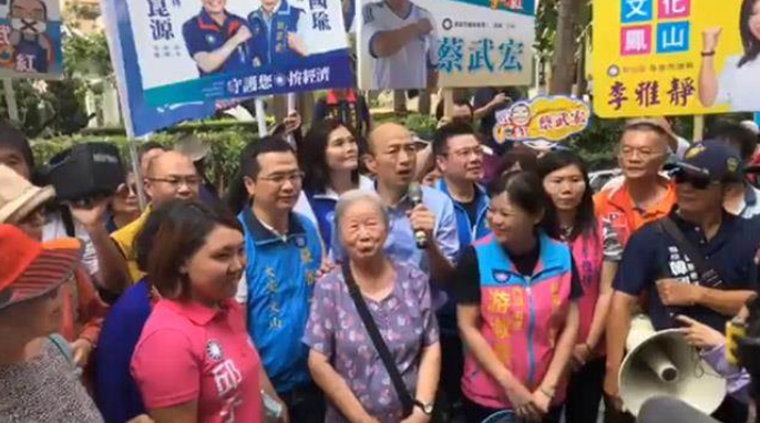韓國(guó)瑜一番話 把高齡87歲阿嬤惹哭了。▓D片來(lái)源:臺(tái)灣《中時(shí)電子報(bào)》)