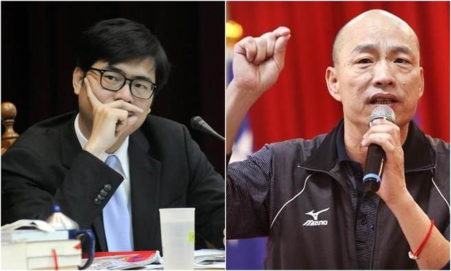 民進(jìn)黨高雄市長(zhǎng)參選人陳其邁(左)、國(guó)民黨高雄市長(zhǎng)參選人韓國(guó)瑜(右)