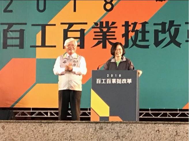 蔡英文(右)8日參加“百工百業(yè)挺改革”云林場。(圖片來源:臺灣“中時電子報”)