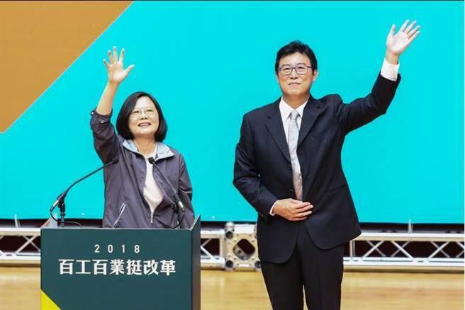 民進黨3日主辦“百工百業(yè)挺改革大會–臺北場”,蔡英文(左)為選情一直低迷的姚文智(右)加油打氣。(圖片來源:臺灣“中時電子報”)