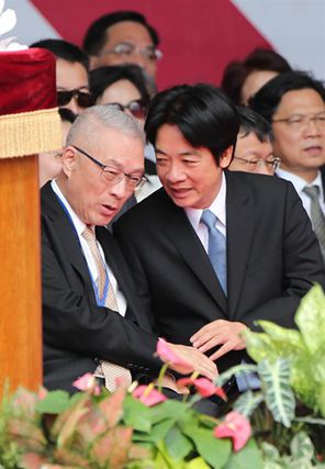 吳敦義、賴清德交頭接耳,互動(dòng)熱絡(luò)。(臺媒圖)