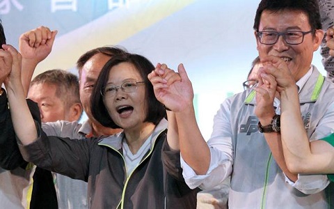 民進黨主席蔡英文(左)14日為臺北市長參選人姚文智(右)站臺。(圖片來自臺媒)