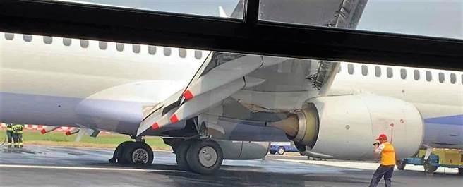華航一航班16日爆胎,停放在跑道上。(圖片來自臺媒)