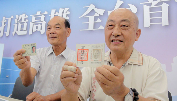 民進(jìn)黨資深黨員、美濃客家籍羅兆洪(左)和參與民進(jìn)黨創(chuàng)黨的前高雄縣議員陳振福,今天表態(tài)挺國民黨高雄市長候選人韓國瑜。(圖片來源:臺灣《聯(lián)合報》)