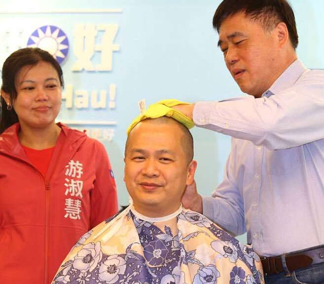 國民黨臺(tái)北市議員羅智強(qiáng)(中)又有驚人之舉,繼選前剃光頭照亮同黨同志游淑慧(左),他宣布四階段參選臺(tái)灣地區(qū)領(lǐng)導(dǎo)人,以行動(dòng)改造國民黨。(圖片來源:臺(tái)灣《聯(lián)合報(bào)》)