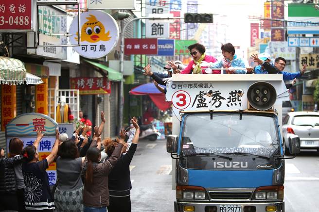 新科臺中市長盧秀燕車隊謝票,民眾熱情揮手致意。(圖片來源:臺灣“中時電子報”)
