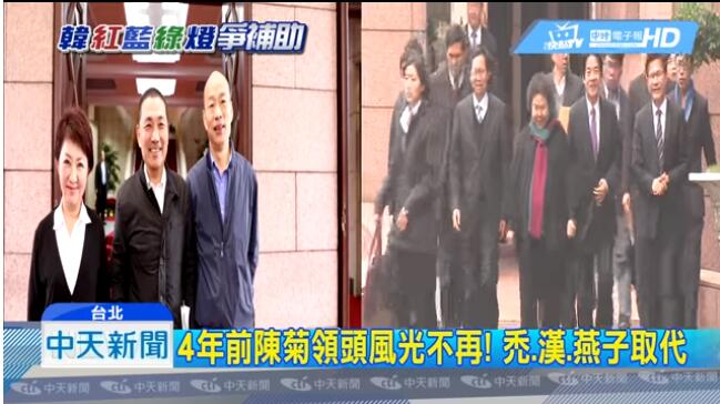 2014年“九合一”選舉之后,同樣是“六都”市長(zhǎng)首次出席“行政院會(huì)”,當(dāng)時(shí)高雄市長(zhǎng)陳菊帶領(lǐng)桃園市長(zhǎng)鄭文燦、臺(tái)中市長(zhǎng)林佳龍、臺(tái)南市長(zhǎng)賴清德等走出“行政院”,“花媽”陳菊走路有風(fēng),霸氣十足,留下歷史鏡頭。
