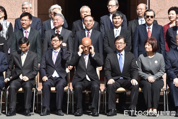 臺當局新任“行政院長”蘇貞昌與“閣員”在“行政院”前大合照。(圖片來源:臺灣“東森新聞云”)