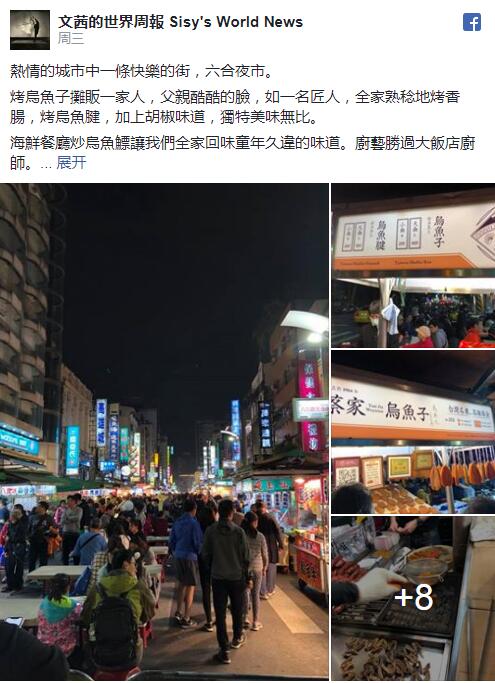 中國(guó)臺(tái)灣網(wǎng)1月25日訊 據(jù)臺(tái)灣“中時(shí)電子報(bào)”報(bào)道,臺(tái)灣資深媒體人陳文茜受邀擔(dān)任高雄2月份觀光大使,特地帶著家人南下高雄進(jìn)行三天兩夜行程,當(dāng)然也逛了高雄知名六合夜市。她近日在臉譜網(wǎng)(Facebook)曝光六合夜市現(xiàn)況,照片中人潮洶涌,一改先前冷清模樣,讓網(wǎng)友感動(dòng)直呼:“小時(shí)候的記憶回來了!