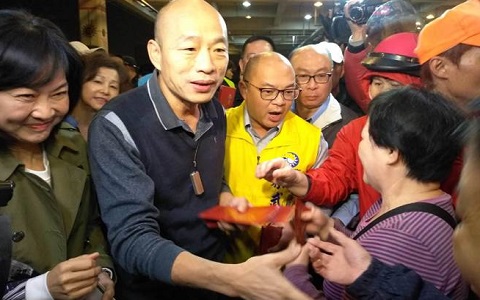 高雄巿長韓國瑜24日一早巡視前鎮(zhèn)魚巿場,并向漁友、魚販拜年、發(fā)紅包。(圖片來自臺媒)
