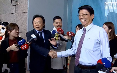 王世堅巧遇謝龍介!一秒尷尬握手“我有扶龍命格,不能罵他”。(圖片來自臺媒)