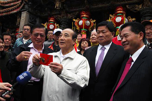 臺灣前“立法院長”王金平到大甲鎮(zhèn)瀾宮發(fā)送“時來運轉(zhuǎn)”小紅包。(圖片來源:中時電子報)
