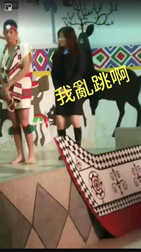 醉酒女子亂入基隆市少數(shù)民族舞蹈團的表演,還直呼“我亂跳!”。(圖片取自臺媒)