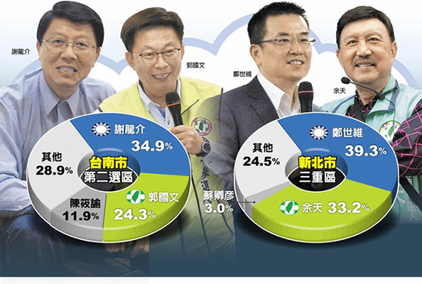 “立委”補選最關(guān)鍵的部分在于投票率。民調(diào)顯示,藍軍投票熱情相當高,臺南的部分,有70.3%表示一定去投票,反觀臺南綠軍只有58%一定去投票;新北部分則勢均力敵,藍軍一定投票有44.7%。兩區(qū)投票率目前估計約6成左右。