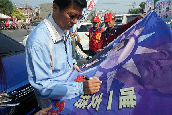 謝龍介替支持者簽名。(圖片來源:臺灣“中時(shí)電子報(bào)”)