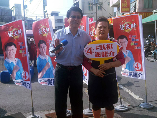 謝龍介市場路口開講,鄉(xiāng)親到場力挺。(圖片來源:臺灣《聯(lián)合報》)