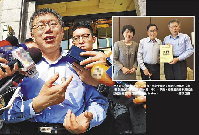 柯文哲(小圖右)偕夫人陳佩琪(左)1日到高雄拜會陳水扁(中)。 (圖片來源:臺灣“中時(shí)電子報(bào)”)