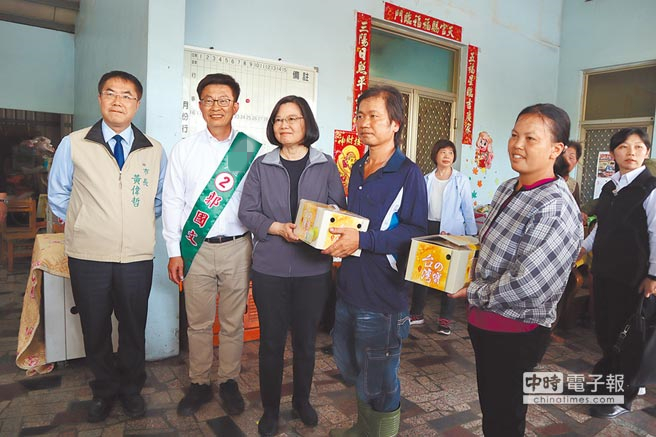 蔡英文(左三)1日南下輔選臺(tái)南市第二選區(qū)“立委”補(bǔ)選民進(jìn)黨參選人郭國(guó)文(左二)。(圖片來(lái)源:臺(tái)灣“中時(shí)電子報(bào)”)