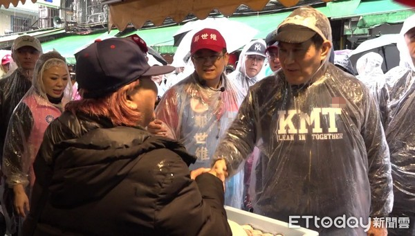 馬英九今晨陪同三重區(qū)“立委”補選候選人鄭世維前往龍門市場掃街拜票。(圖片來源:臺灣“東森新聞云”)