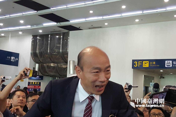 高雄市長韓國瑜今天從廈門返回高雄,在機(jī)場被民眾簇?fù)。(中國臺灣網(wǎng)發(fā))