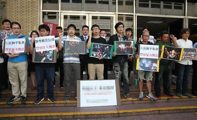 臺(tái)灣“高等法院”審理“學(xué)運(yùn)三二三占領(lǐng)‘行政院’案”將辯論終結(jié),一審獲判無(wú)罪的魏揚(yáng)(中)等于庭前開(kāi)記者會(huì),稱(chēng)二審法官應(yīng)判全數(shù)被告無(wú)罪。(圖片取自臺(tái)媒)