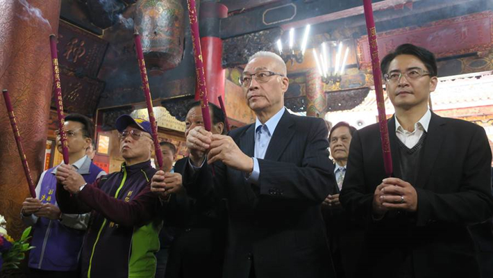國(guó)民黨主席吳敦義1日上午到鹿港護(hù)安宮與媽祖玻璃廟臺(tái)灣護(hù)圣宮兩地參拜(圖片來(lái)源:臺(tái)灣“中時(shí)電子報(bào)”)