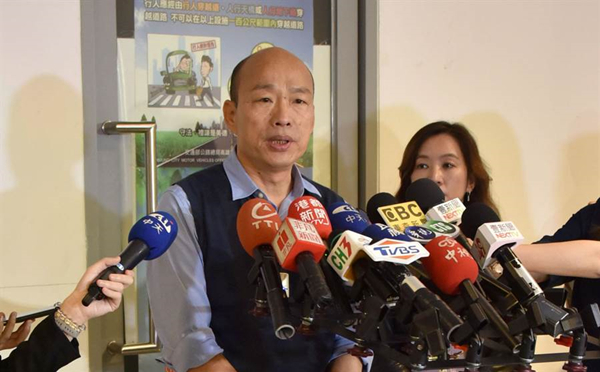 高雄巿長韓國瑜19日在高雄巿政府回應國民黨主席吳敦義所說的征召初選。(圖片來源:臺灣“中時電子報”)