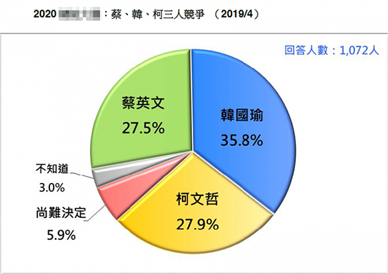 藍白綠民調比拼:韓國瑜“一支獨秀” 蔡英文排末位