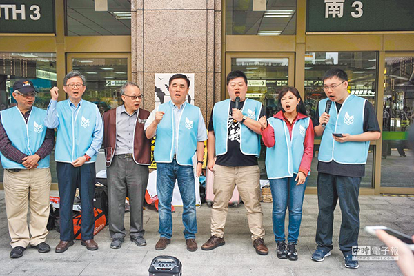 “重啟核四公投”領銜人黃士修(右一)、“核能減煤公投”領銜人廖彥朋(右三)、國民黨副主席郝龍斌(右四)等人舉行“以核養(yǎng)綠”全臺聯署行動記者會。(圖片來源:臺灣“中時電子報”)