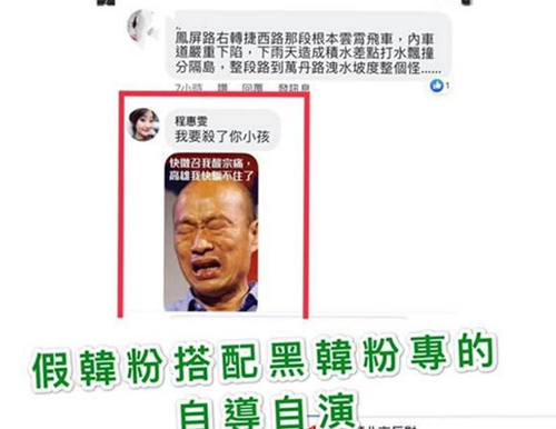 游淑慧說(shuō),看到臉譜網(wǎng)名為“程惠雯”的賬號(hào)到處留言酸高雄市長(zhǎng)韓國(guó)瑜,到底是假韓粉、搭配“黑韓粉!弊詫(dǎo)自演,還是單純不理性反韓者的暴力留言?大家來(lái)公斷。