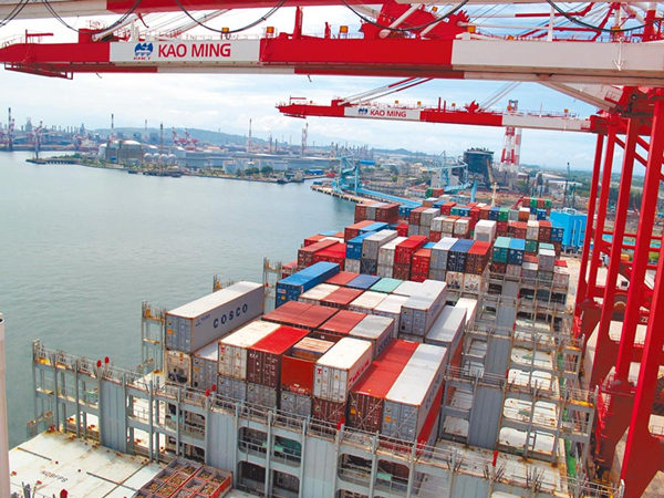 高雄市長韓國瑜力推自由經(jīng)貿(mào)區(qū),引發(fā)綠營群起反對。圖為高雄港貨柜吞吐情形。 (圖片來源:臺灣“中時電子報”)