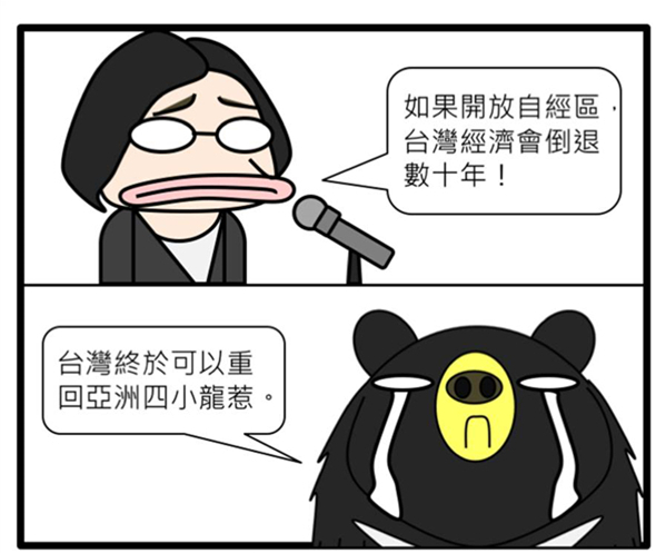 臉譜網粉絲頁“臺灣鯛民”畫圖諷刺,如果自貿區(qū)會讓臺灣經濟倒退數十年,那“臺灣終于可以重回亞洲四小龍了!”網友留言“反正政治都快退回解嚴前了……”,數十年前的臺灣經濟不僅有“臺灣錢淹腳目”的美名,薪資起薪也不見得比現在低,許多老一輩民眾都很懷念那段臺灣還是“亞洲四小龍”之首的黃金年代。
